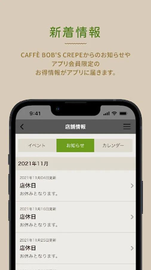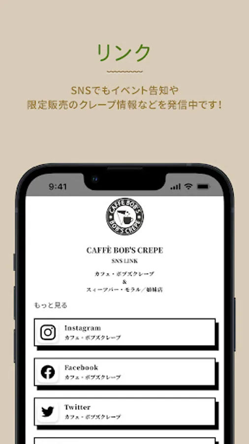 「CAFFÈ BOB'S CREPE」からのお知らせや