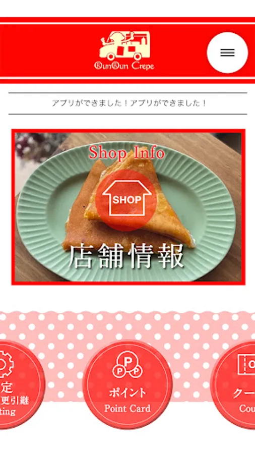Store opening information and announcements from "Run Run Crepe",