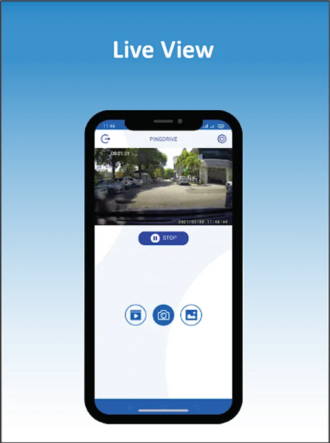 Ping drive is a mobile phone app used with your dash cam. After connecting to your dash cam via wi-fi, you will be able view real time video from your dash cam. You may also view historical footage and download important videos/pictures to your mobile phone.