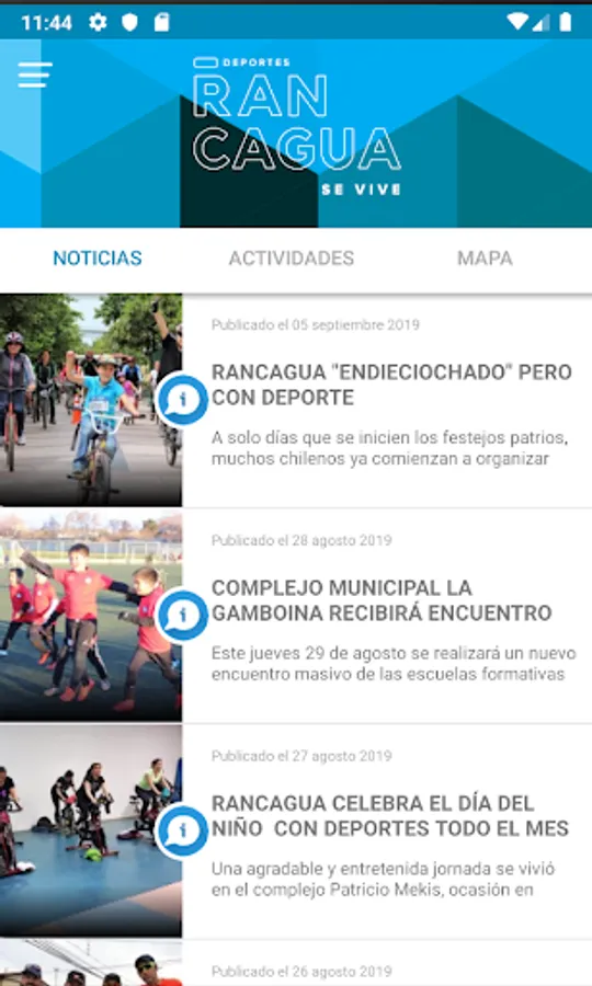 Application Rancagua Sports activities and workshops held in the commune, download the application to keep abreast of events, news and all the sporting events of the commune.