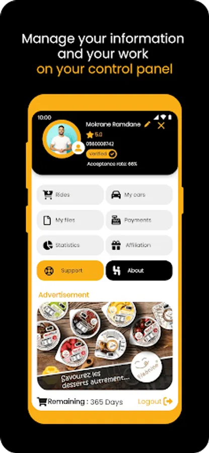 Anyone who owns a recent vehicle and wants to work either on a full-time or occasional basis can apply to provide their services to customers through our application in just a few clicks and receive 100% of the profits.
