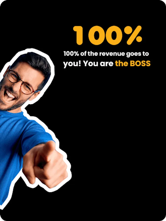100% of the income generated by the service belongs to you. We are not your partner, you are your own boss, we are only your work tool.