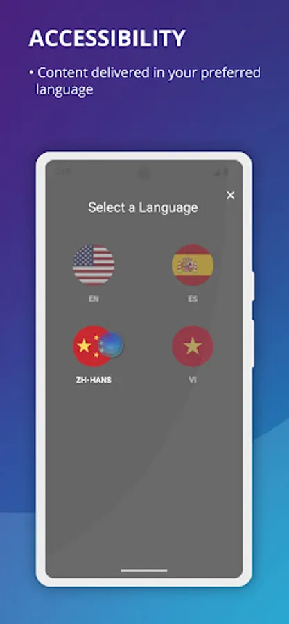 Access content in many languages through our patented smart language technology. Your phone automatically provides information in your preferred language without having to create a profile or select a language.