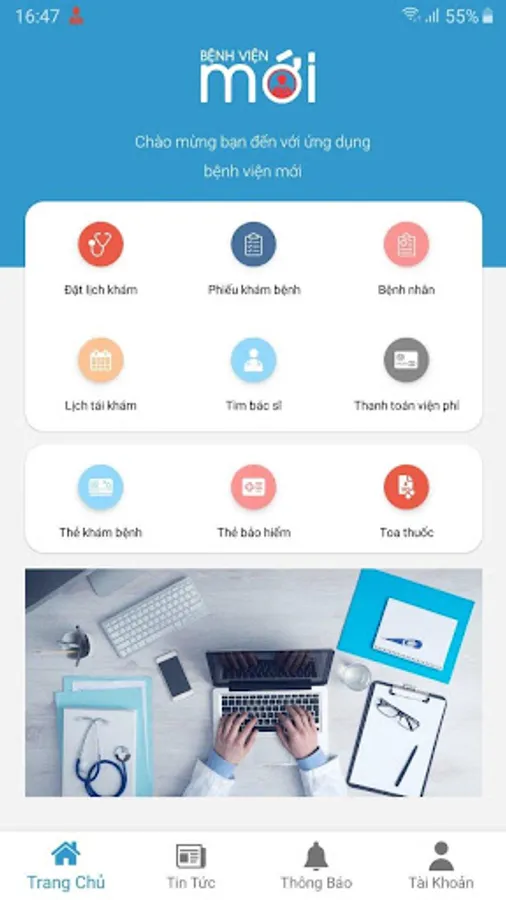 New Hospital is an online registration software for hospitals developed by LIINK SOFTWARE AND INFORMATION TECHNOLOGY SERVICES CO., LTD. Through the New Hospital, patients can: Register for medical examination, Pay for medical care, Receive a medical examination card, Create patient records, Manage patient records, Manage medical examination cards, Consultation screening ... Totally online anytime anywhere without having to go to the hospital to queue and wait.