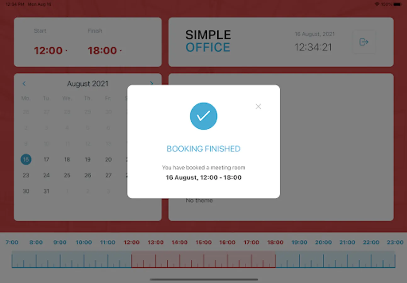 - Control panel that you can hang near the meeting room and make a booking in a couple of clicks.