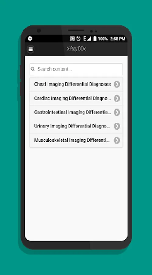 X-Ray Differential Diagnosis is intended for medical students, young doctors and other healthcare professionals. It provides a list of possible causes for each finding encountered in everyday medical practice and an account of their differential diagnosis. It contains information about almost 140 radiological findings. To take advantage of this app you must be able to read medical x-ray films by your own self.
