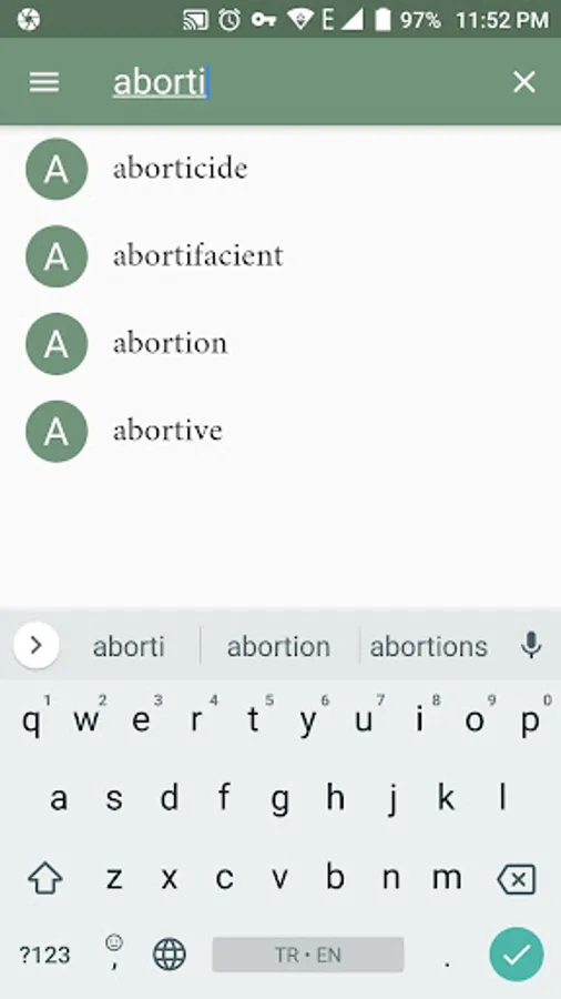 - Immediate and fast translation of Turkish term