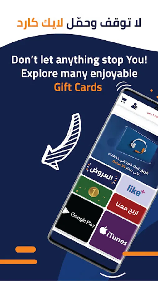 The first Arab app selling Internet, games, iTunes, recharge, PlayStation cards.