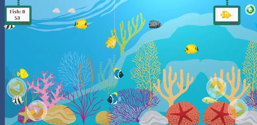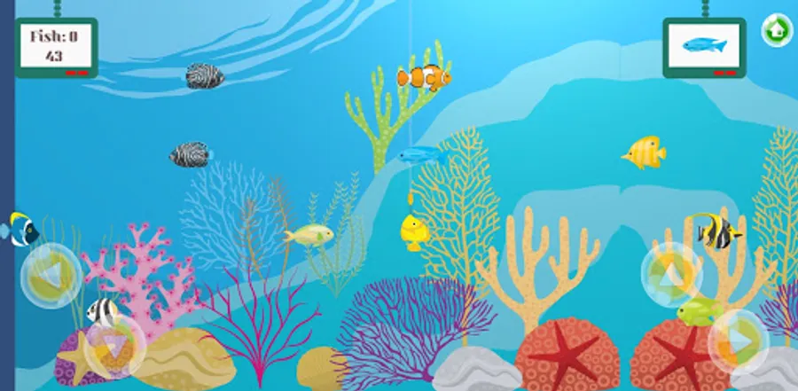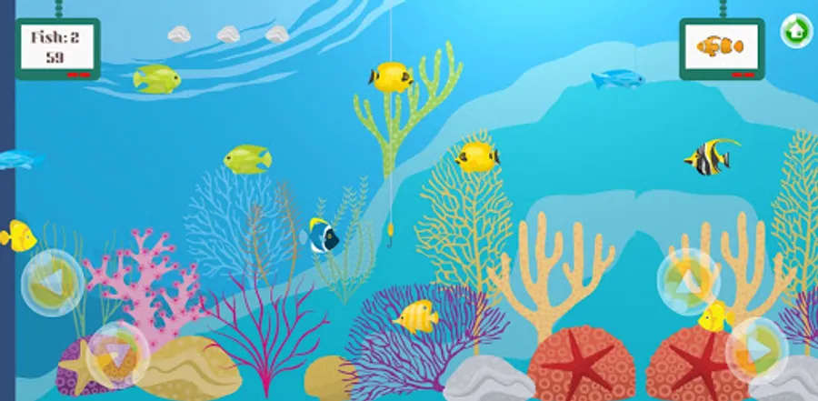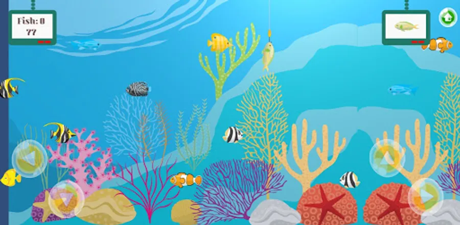 Navigate your hook across the reef to catch predefined fish types. Earn a sticker for each set of 5 correctly caught fish. Lookout for fish that suddenly decide to speed off. Is the predefined fish taking long to swim across? Tap on the display screen to have a different fish type recommendation. Currently there are only five stickers to be rewarded but we are hoping to add some more in the next possible update.