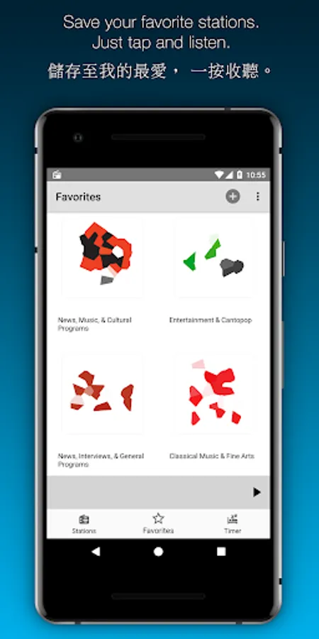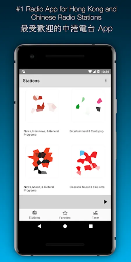 香港收音機介面簡單易用,一按即可收聽香港各電台的高清廣播。