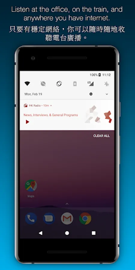 收聽香港各電台的音樂、新聞及文化節目。