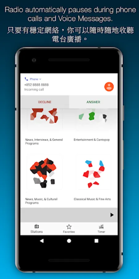 香港收音機在良好WiFi、LTE、4G網絡下運作最佳。使用較慢網絡的用戶可能要等候緩衝。