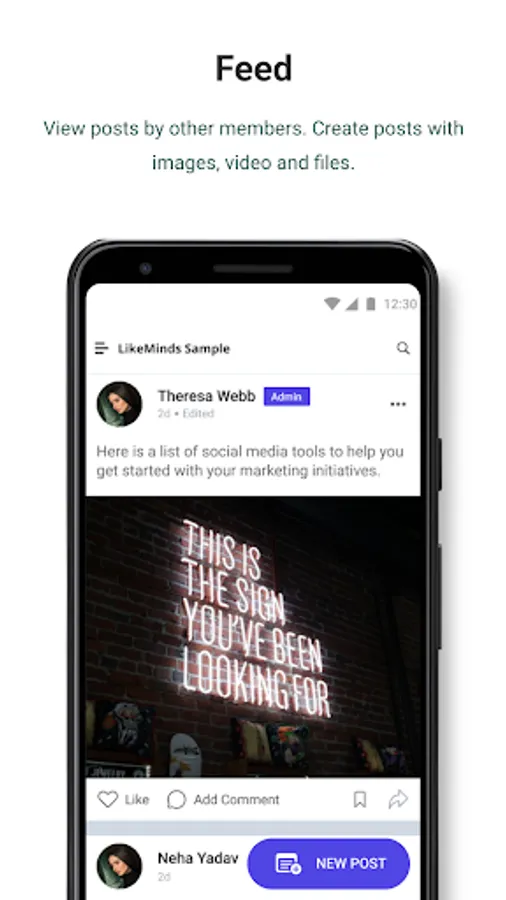 Note: This sample app is designed to demonstrate the capabilities of the LikeMinds Chat and Feed SDK. To integrate these features into your own app, reach out to our team at hello@likeminds.community for personalised assistance.