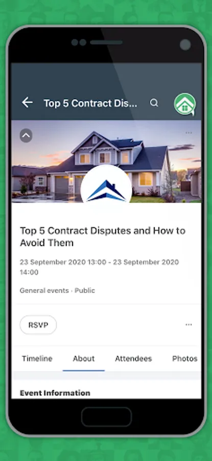 • Use the Events tab to post an event or RSVP to an event you want to attend. With 1,000 of local events each year, you will always know what’s happing in your area.