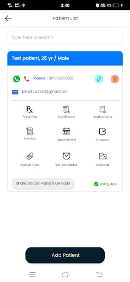 - Create Patient Profile and give Prescriptions / Medical Certificates / Invoice / Referral letters / Admission letters/ Instructions / take digital consent etc. and share this PDF directly to your patients.