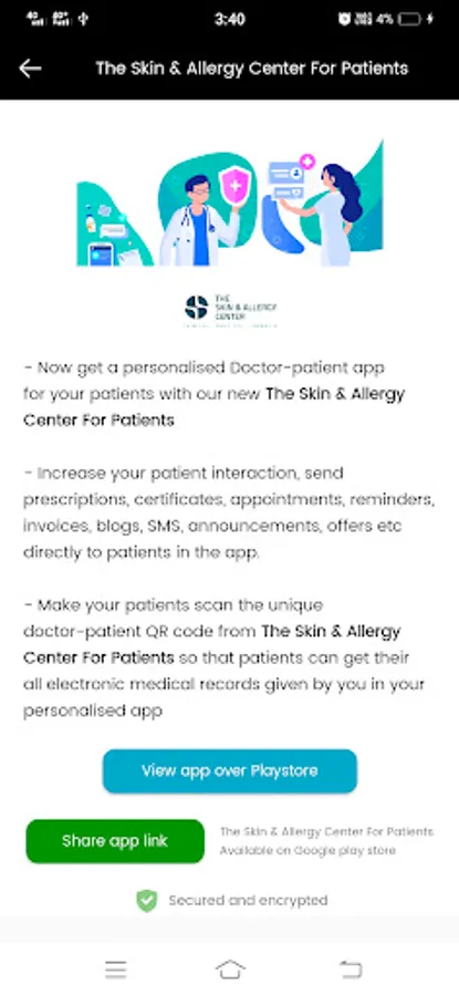 - The Skin & Allergy Center for Patients is also available for patients. Patient can download the app from play store and scan the unique doctor-patient QR code and get all the medial records in the app itself.