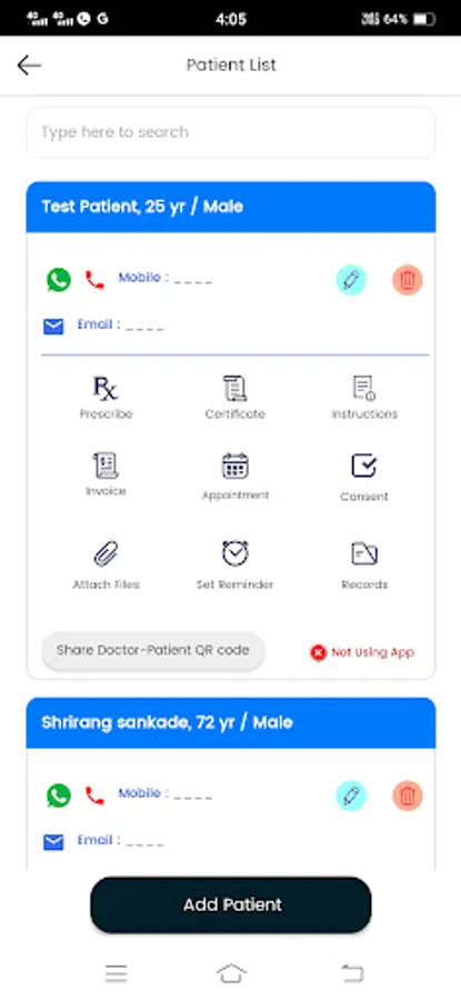 - Create Patient Profile and give Prescriptions / Medical Certificates / Invoice / Referral letters / Admission letters/ Instructions / take digital consent etc. and share this PDF directly to your patients.