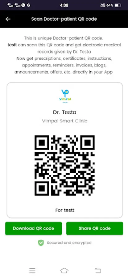 - Download the VimPal Patient App, login through mail id and scan the QR code provided by your doctor.