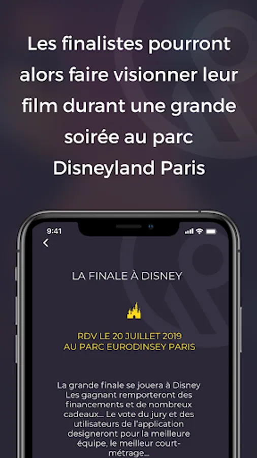 The three directors who have received the most votes from the public, will have the chance to be invited to Disneyland where will be held the final of this festival. The finalist will be announced by a jury team.