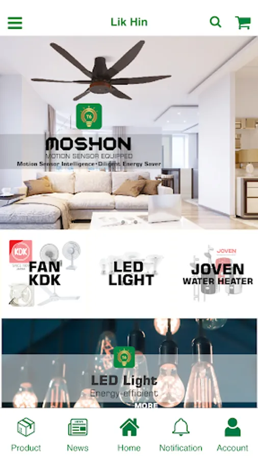 Lik Hin Electrical Trading Sdn Bhd have our own brands products like T6LH Led Bulb, Led Tube, Led T5, Led T8 and Led Ceiling Light. Execpt that, we also have selling other brands like Kdk ceiling fan, Kdk wall fan,Kdk ventilating fan,Kdk stand fan, Panasonic ceiling fan, Panasonic wall fan, Joven water heater. Emergency light and electrical accessories and more. All the brands you need and trust can get at Lik Hin Electrical Trading Sdn Bhd.