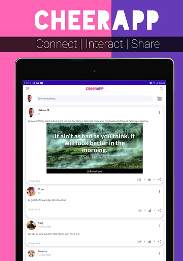 Cheery therefore seeks to provide an online environment where people can connect, interact and share positivity. A platform where people can simply talk, listen and more importantly, spread love to those that need it. A place where we can simply let down our guard, be vulnerable and fully human without having to worry about image, facades or trends.