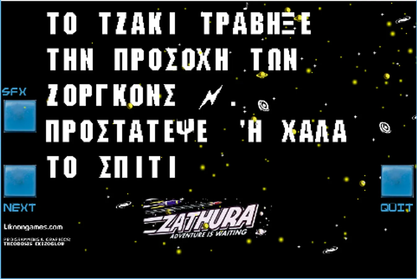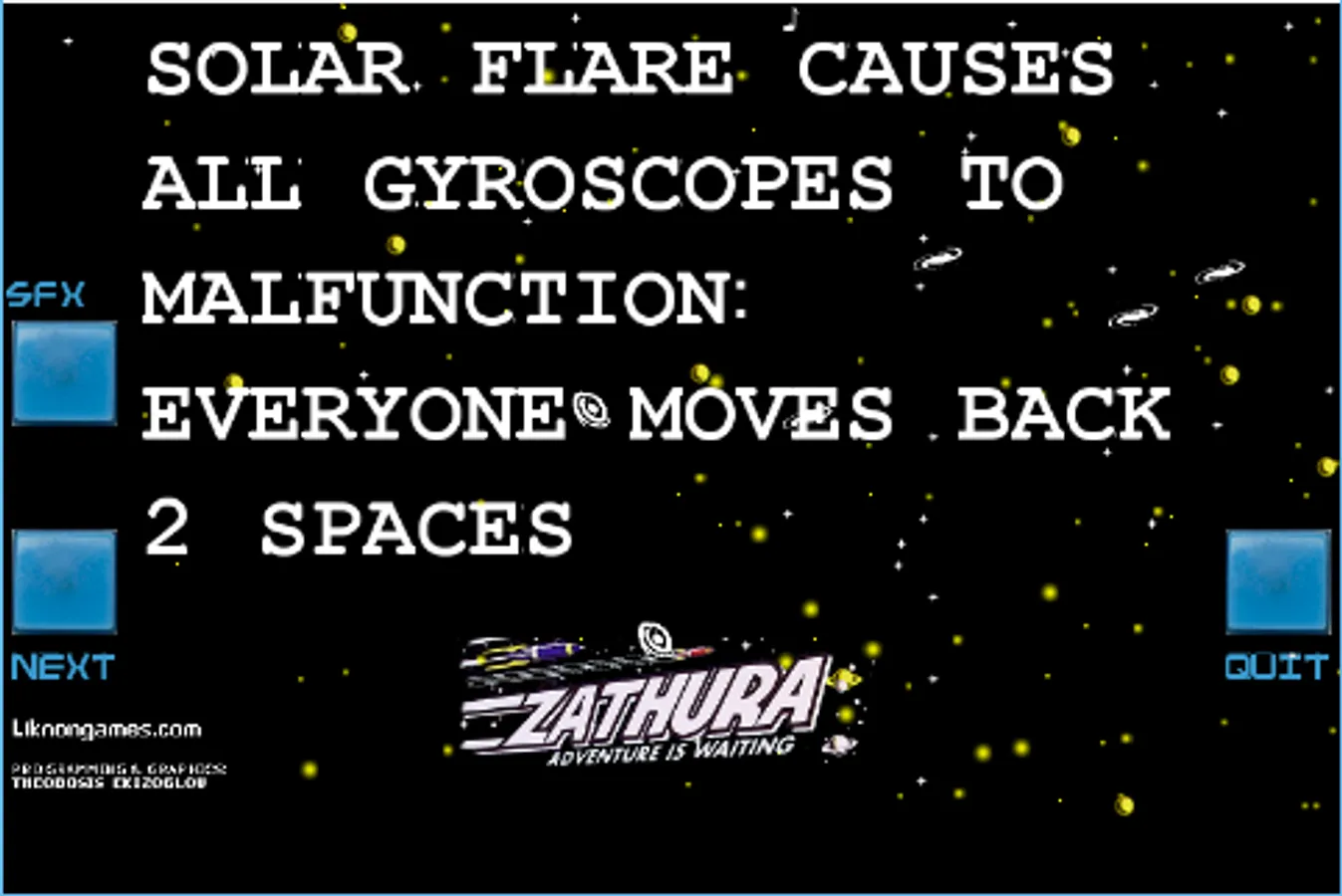 Until then, you can read the order-cards of the game (you know Zorgons?) and also watch the stars, galaxies and planets that are in standing motion in the background of the game.