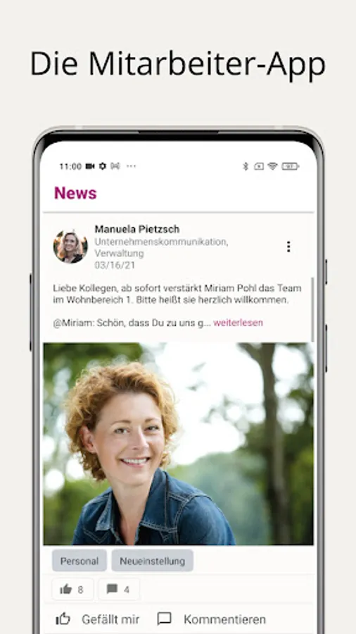 Even employees who are not very tech-savvy are able to use the LUCI employee app intuitively. All central areas - such as newsfeed, employee search and chat - are structured and can be operated using common functionalities. A clear editor enables you to bring content into shape and highlight essentials. Responsibilities and rights within the LUCI app are clearly regulated.