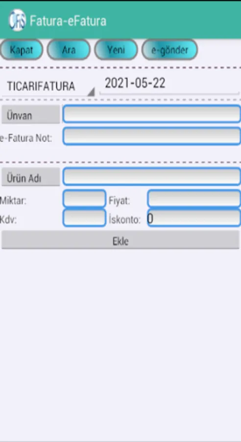 It is an application that you can manage your commercial accounts mobile. You can use your current follow-up and invoice transactions that you want to use commercially or individually on a mobile basis. Ear Archive allows you to prepare your invoice, Efatura and Eirsaliye documents determined by the Revenue Administration. ICE integrator username and password are required. The application sends the prepared documents to the revenue administration via the ICE integrator.