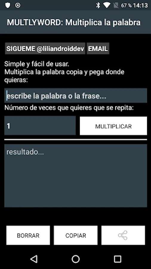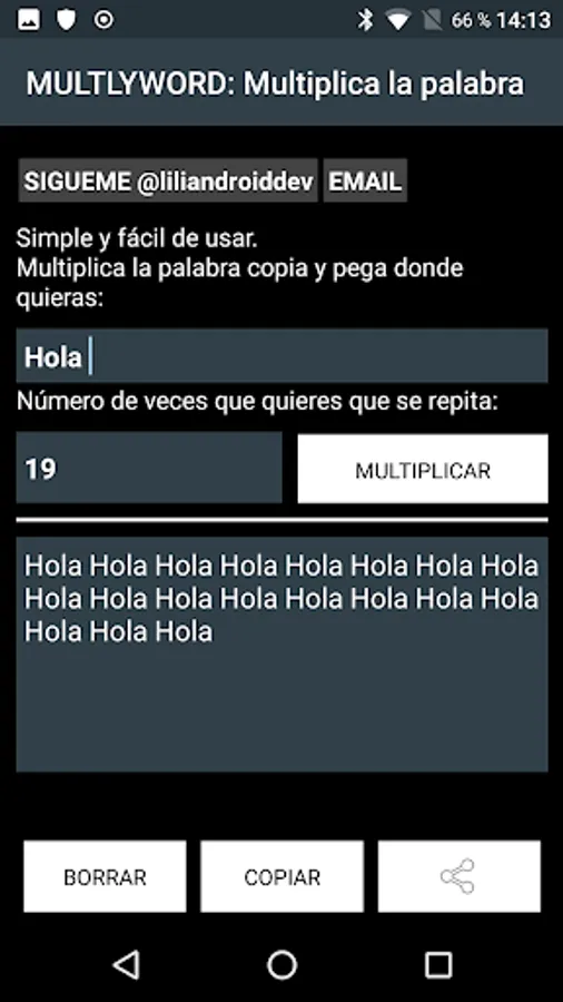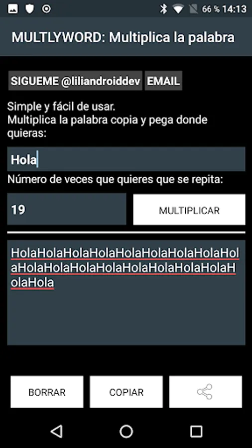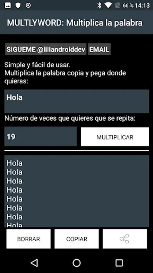 With this app you can multiply the letters, words or phrases to share with different message applications.