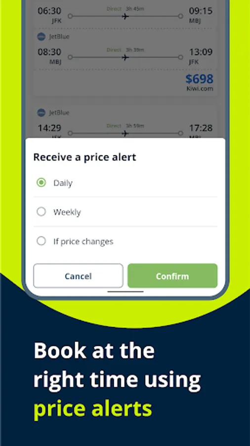 • Create price alerts on your favorite destinations to be notified when the ticket price goes down.
