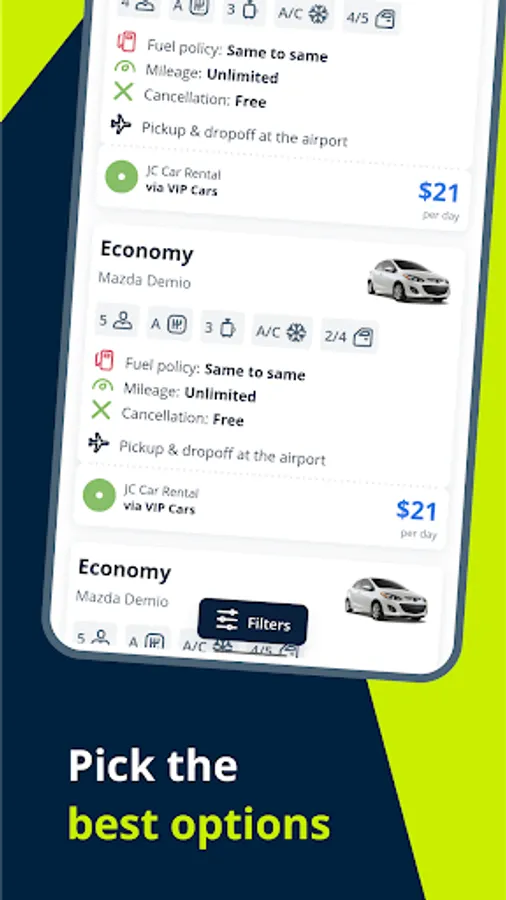• Customize your search: pick up at the airport, train station or city center, unlimited mileage, Full to Full fuel policy, automatic or manual car, air-conditioning, etc.
