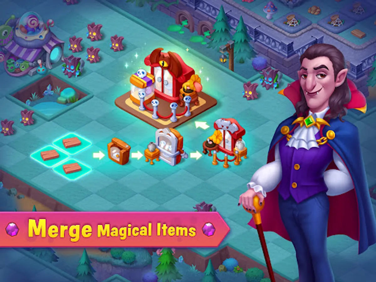 Match&Merge all kinds of curious items to meet the race of undead, you'll save and rebuild the undead world with their help. Bring Vampires, mummies, werewolves, slimes and other monsters' home.