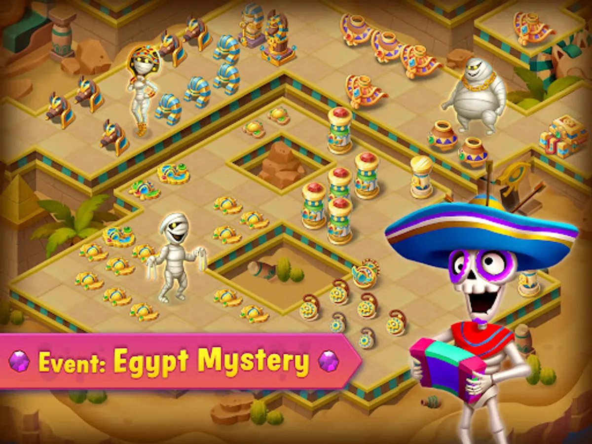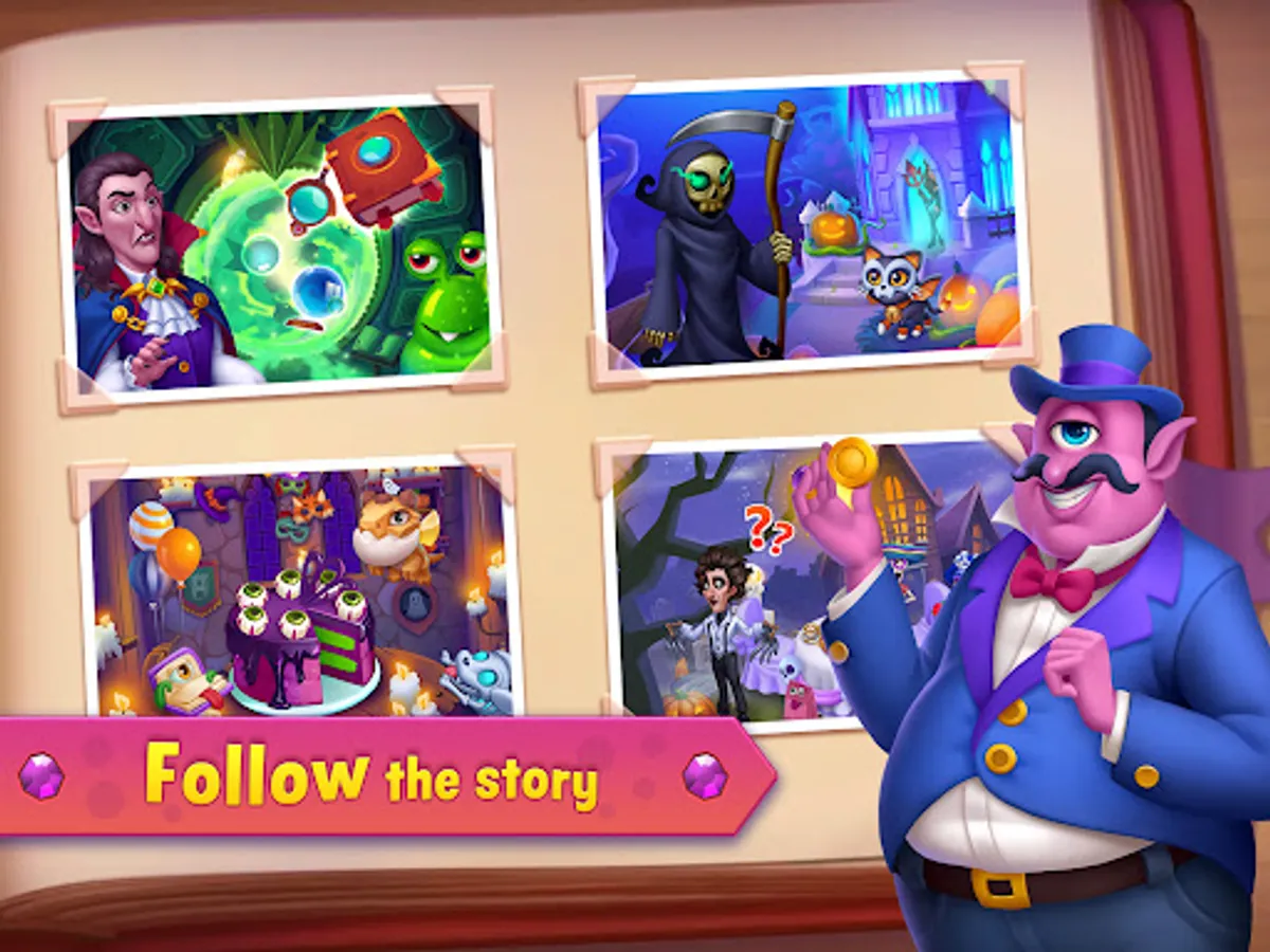 Match&Merge puzzles to earn specially themed treats and surprises. Unlock the building or expand the undead world first? Merge 3 or Merge 5? It's up to you.