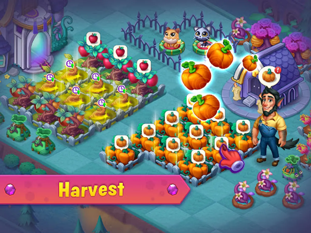 Match& Merge to harvest the crops and build your own world. Clear away the mist and find more treasures as you explore the monster world.