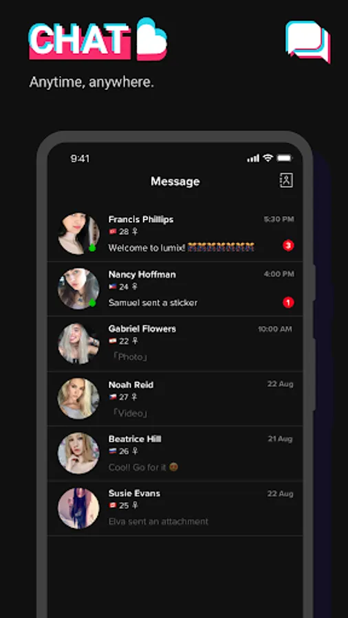 - Users from multiple countries, so you can choose the one who shares similar interests with you, and chat with him/her right now.