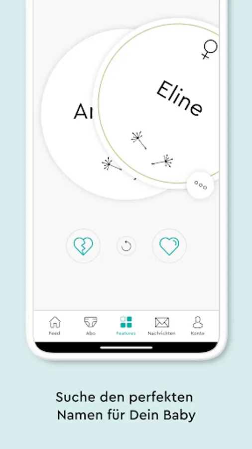 Du bist schwanger und auf der Suche nach dem perfekten Namen für euer Baby? Unser Namen Finder hilft Dir dabei, zusammen mit Deiner Partnerin / Deinem Partner euren gemeinsamen Wunsch Babynamen zu finden. Und das ganz einfach nach dem Prinzip: Swipe, like, match! Swipe im Namen Finder durch eine Datenbank aus über 17.000 möglichen Babynamen und erfahre mehr über ihre Herkunft und Bedeutung. Setze Filter, um die Auswahl nach Deinen Wünschen einzugrenzen und verbinde Dich mit Deiner Partnerin / Deinem Partner, um herauszufinden, welche Namen euch beiden gefallen.