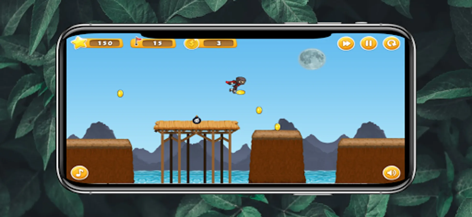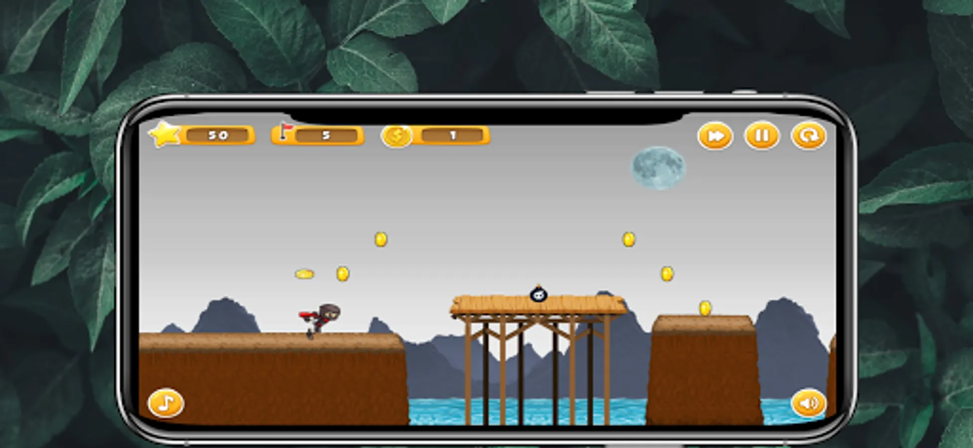 This Game is about a ninja in which you have to dodge the obstacles and jump from one platform to another in order to reach the end. Collect points and stars to make score higher. Also, don't fall in the water!