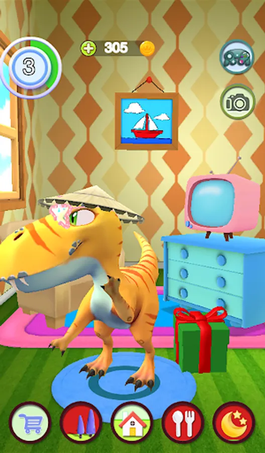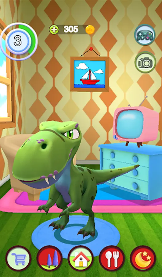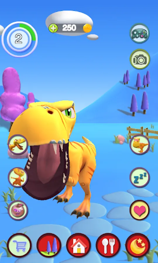 Talking Dinosaur repeats everything you say with a funny voice. Adopt Talking Dinosaur as your very own baby dinosaur and help him grow into a super cool fully-grown virtual dino. Customize dinosaur by choose from loads of accessories to make him look like you like! Whether you're a kid or an adult, there's no end to the cool fun you can have with Talking Dinosaur as your virtual pet! Enjoy hours of fun and laughter with Talking Dinosaur.