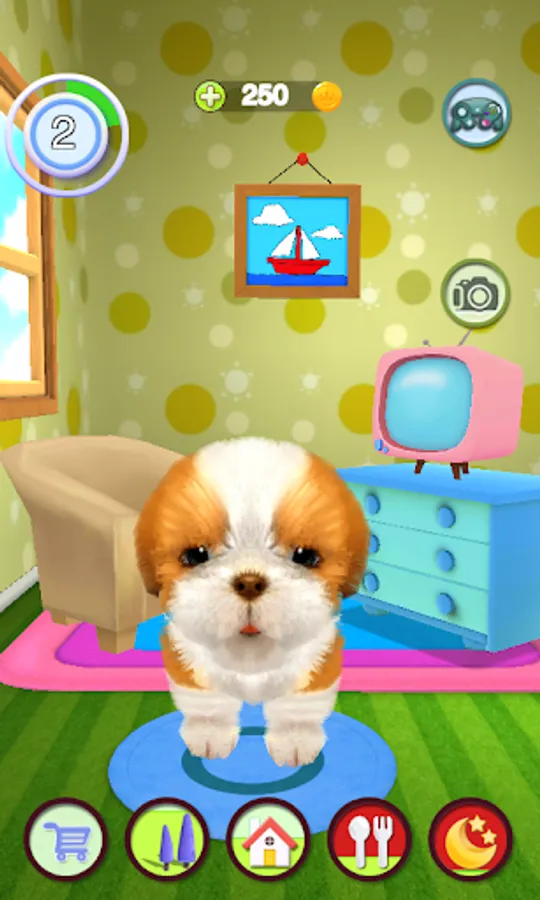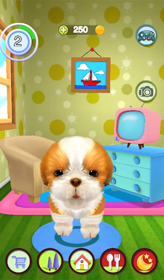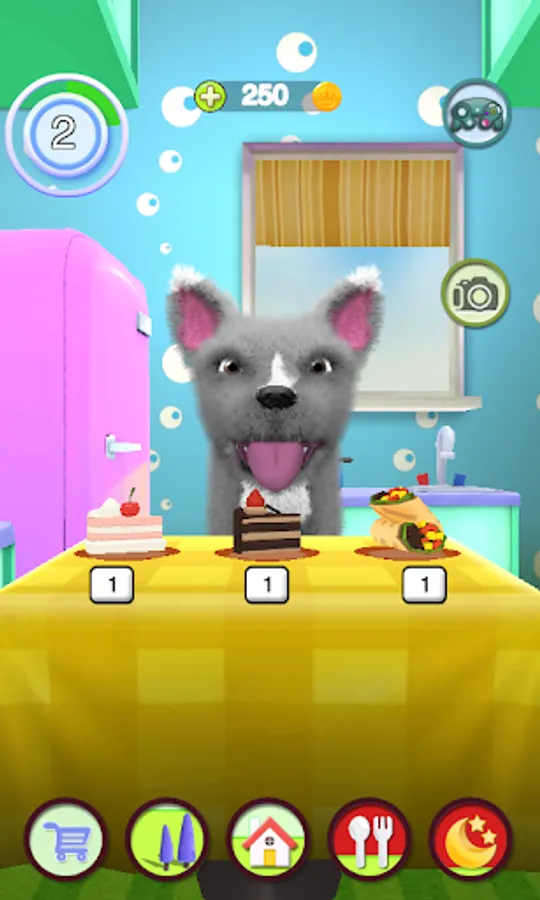 Adopt Talking Dog as your very own baby puppy dog and help him grow into a cutest fully-grown virtual pet dog. Take care of Talking Dog, the cutest puppy out there. Talking Dog needs your love. Just talk to the talking dog. He answers with his funny voice and reacts to what you say or your touch.Customize him by choose from loads of accessories to make him look like you like!
