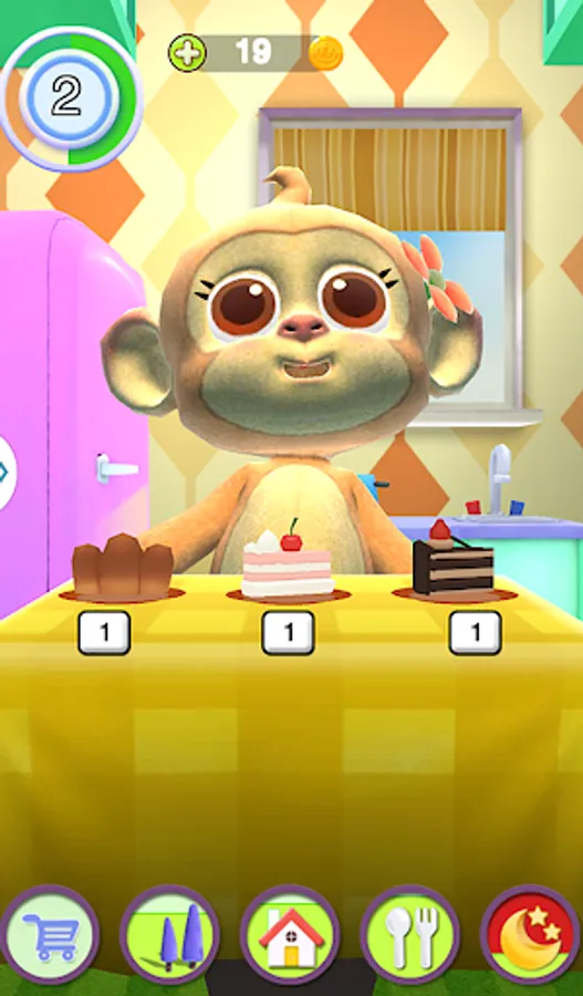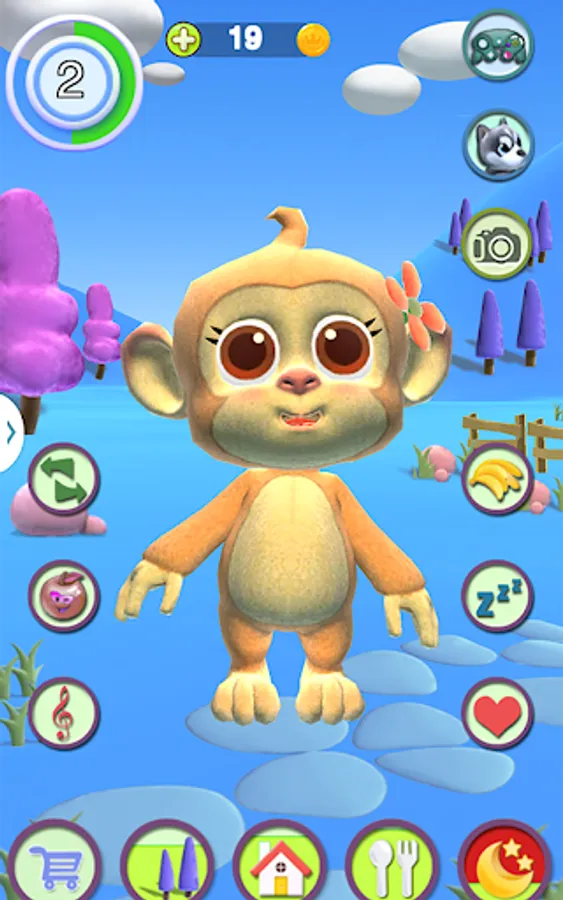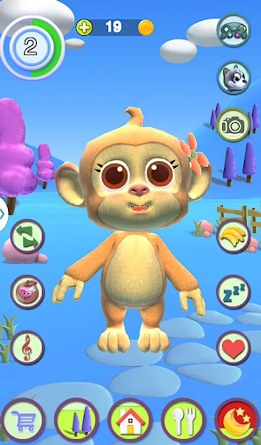 ✔ Talk to Monkey and she will repeat everything you say with a funny voice.