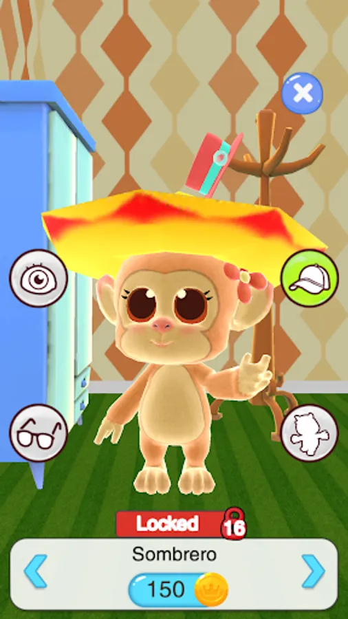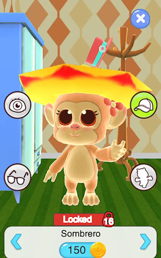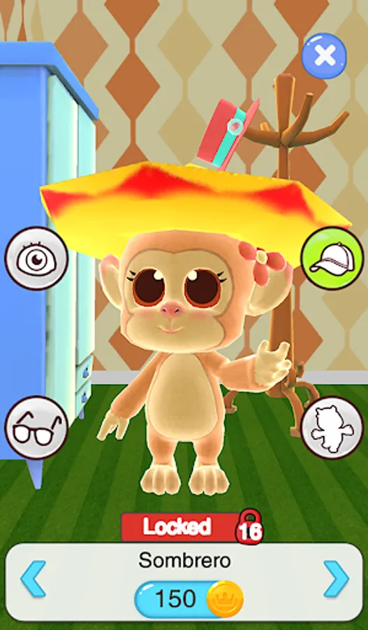 Talking Monkey repeats everything you say with a funny voice. Adopt Talking Monkey as your very own baby monkey and help her grow into a super cool fully-grown virtual monkey. Customize talking monkey by choose from loads of accessories to make her look like you like! Enjoy hours of fun and laughter with talking monkey.