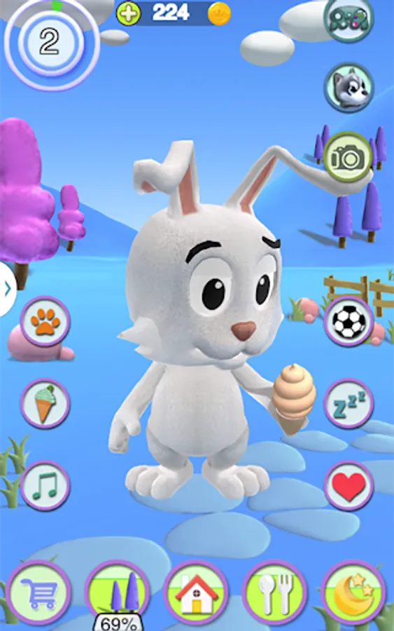Spend a little time with the cute rabbit and get to know her better. Talking Rabbit needs your love. Enjoy hours of fun and laughter with this talking and free virtual rabbit app!
