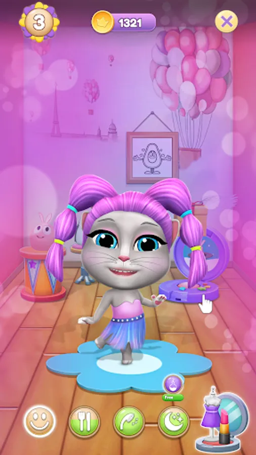 ๐ Lily Kitty Cat - virtual pet game is a perfect combination of animal games and dress up games and it is great for all people who adore cute games and fashion. This talking pet game is a perfect virtual pet simulator but also it can be an interesting dress up game. Lily - My Virtual Talking Pet wants to be one of those cute animals which are pretty and trendy all the time with gorgeous outfits. So, dress up your Kitty Cat, choose some stunning outfit and put makeup on your pet cat. Be creative and make your Kitty Cat Lily attractive and cheerful. Donโt forget to make her house also modern! This beautiful virtual talking cat will look even more spectacular if you buy some stylish furniture.