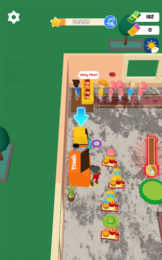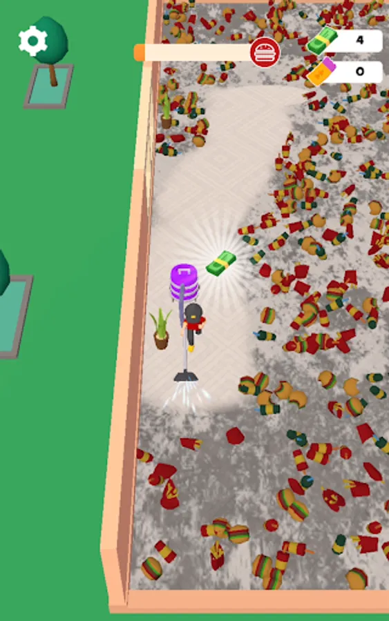 Tidy up the cluttered rooms, do some carpet cleaning, clear away trash, and lay the foundation for your dream restaurant. As you progress, unlock cash registers, food stands, and tables to attract customers and boost your earnings. It's important to do the cleanup after each customer to get that profit!