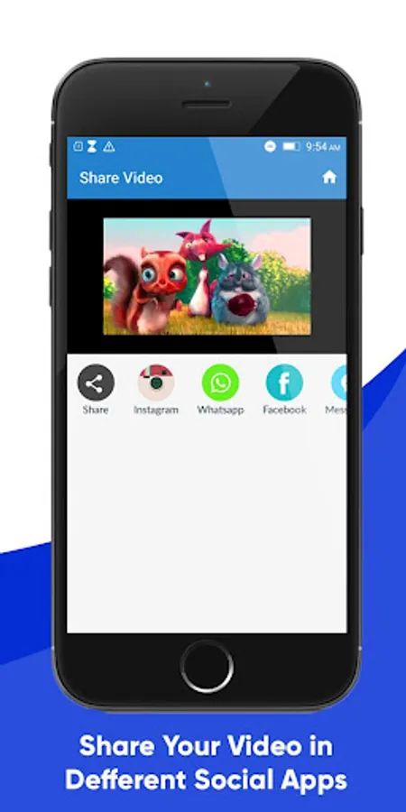 - Share video in different social app.