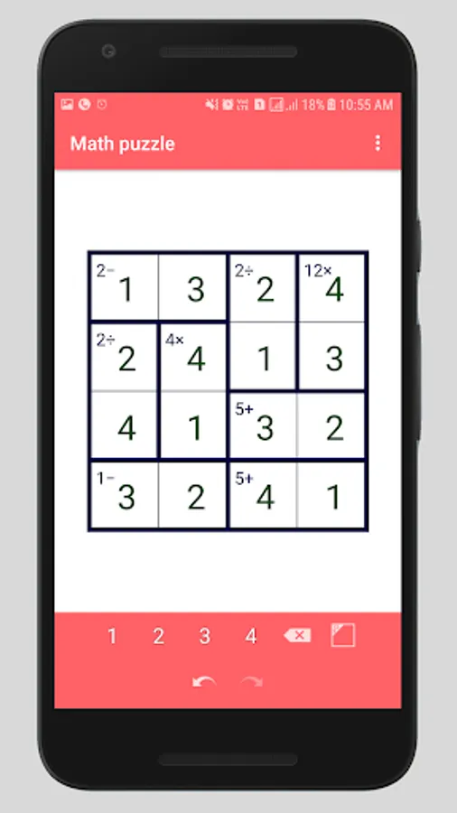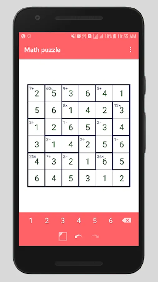 - A division clue (e.g. ‘3÷’), similarly, is always in a block of size two and means that one digit divided by the other is equal to the given amount.