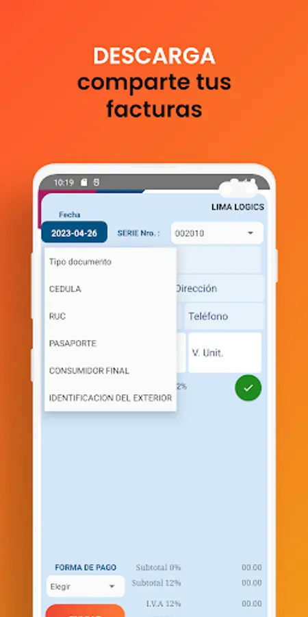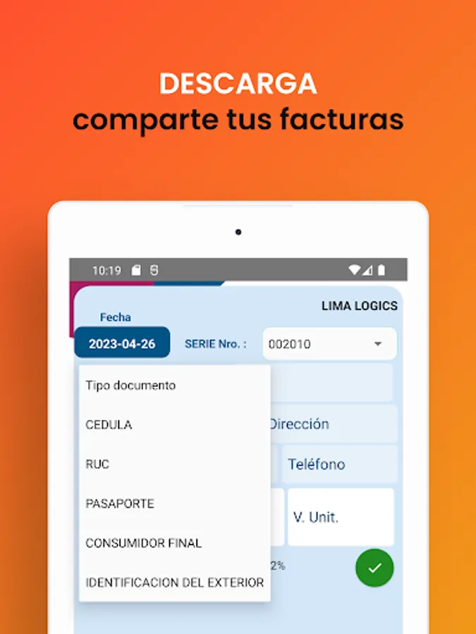 -Download and Share your invoices, through WhatsApp, email, among others.