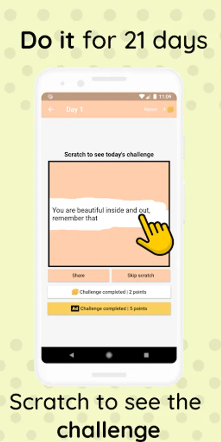Once you complete your daily task, you can mark it as completed and collect the points (to customize your avatar, to unlock motivational reminders and free wallpapers).
