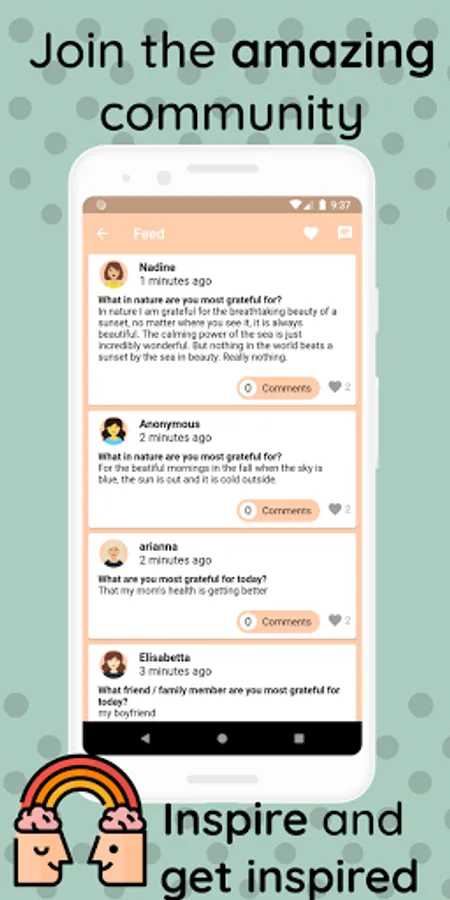 In the gratitude challenge, you can write your thoughts and share them in the feed (it can be anonymous too). Here you're going to see all the community answers and you can also give it a like, comment, or send gifts to your favorite ones.
