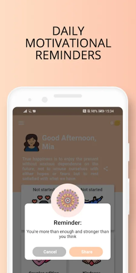 There’s a selection of positive wallpapers for your phone and motivational reminders to share with your friends. Also, some relaxing music.